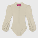 The BIANCA is designed for full coverage, a long sleeve one piece this suit has a front zipper and gathered bishop sleeve. Whether you are spending the day in the line-up or protecting your skin from the sun, this one piece will bring glamour wherever you go.