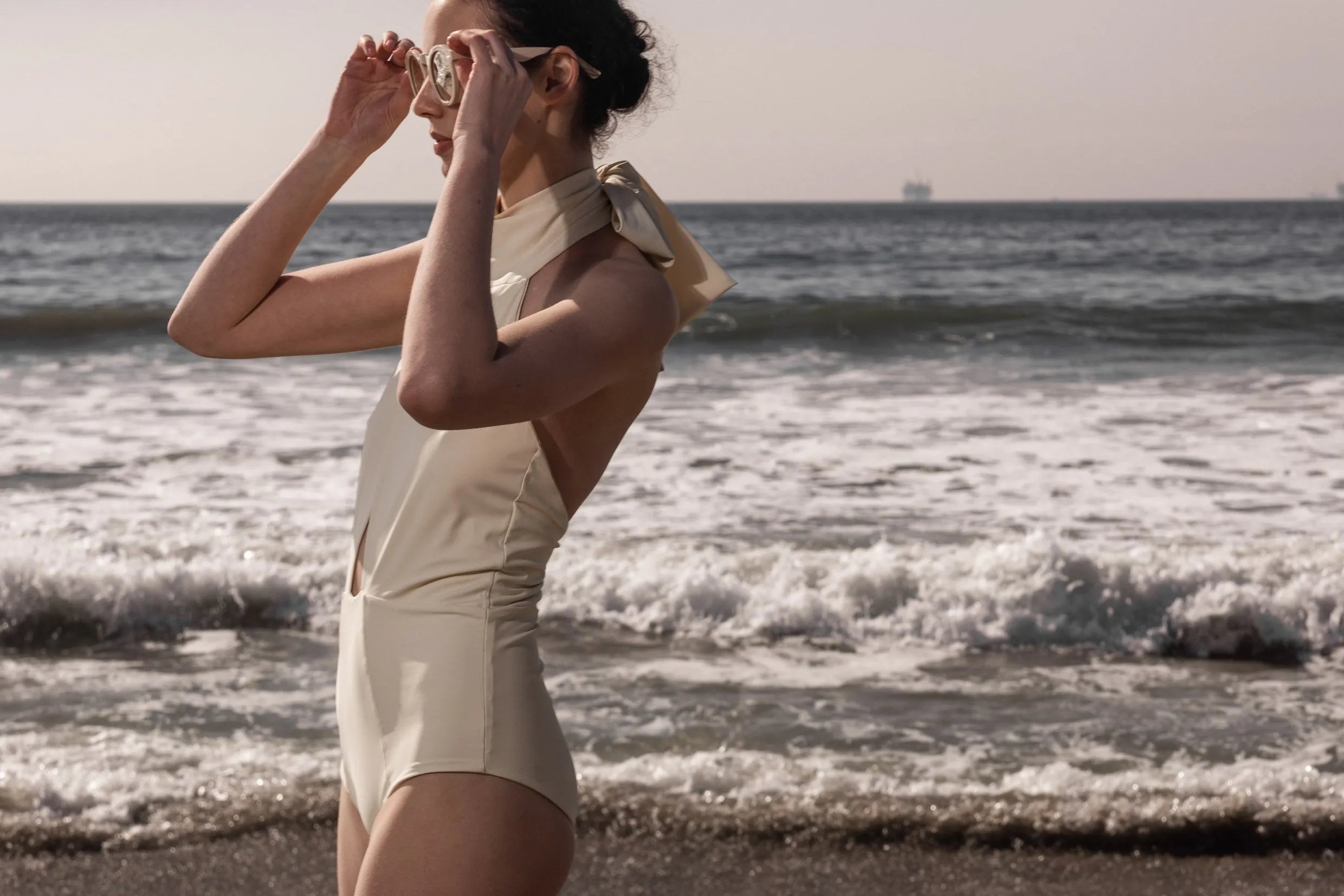 Bring the drama with our renowned GINGER suit. With an exaggerated neck tie and crossed front top detail, this suit offers full coverage while exuding subtle glamour.