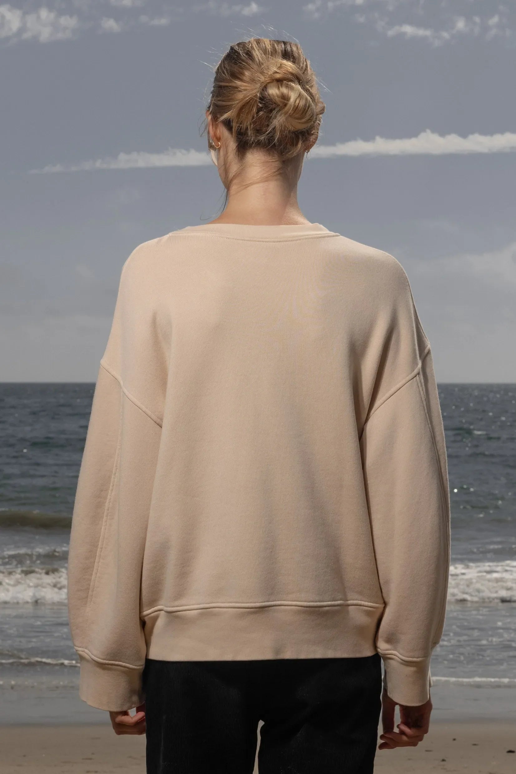Barrel Sleeve 70's SRF LA Crewneck - Antique Cream Embroidered - Heidi Merrick