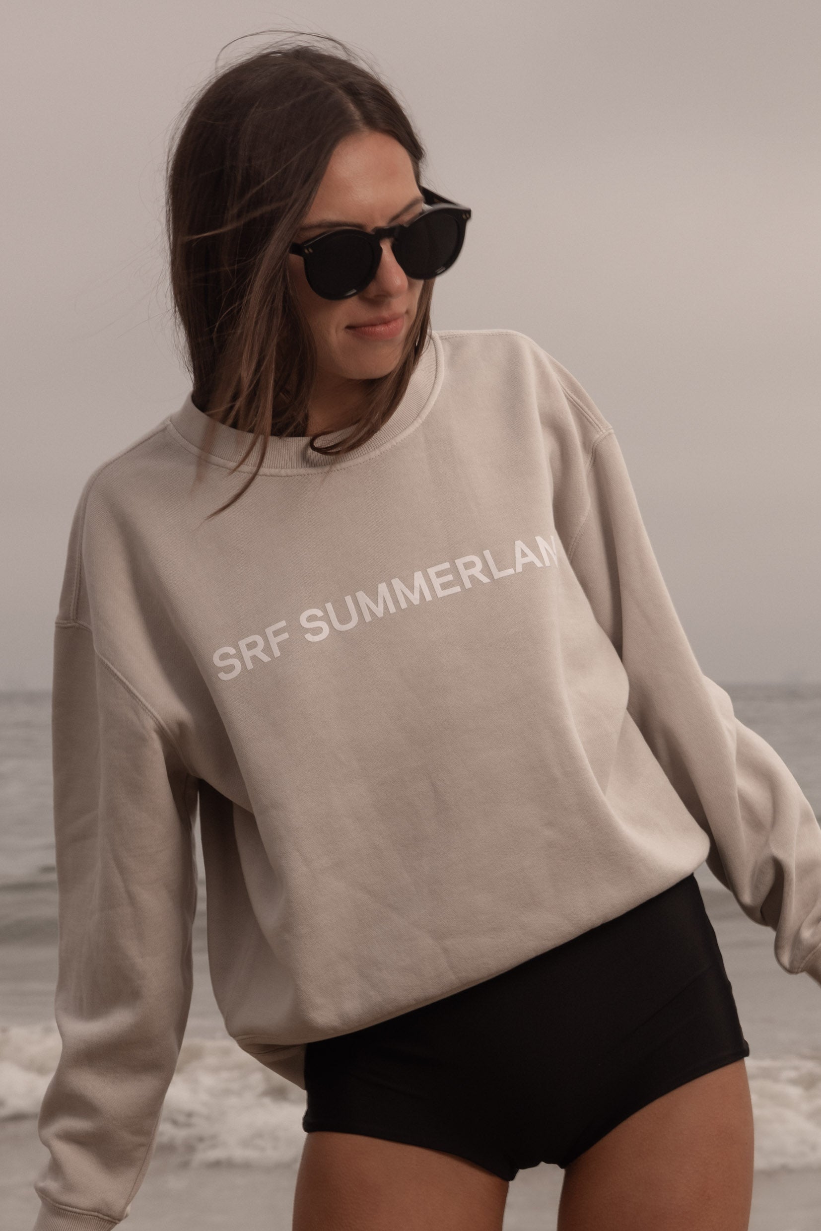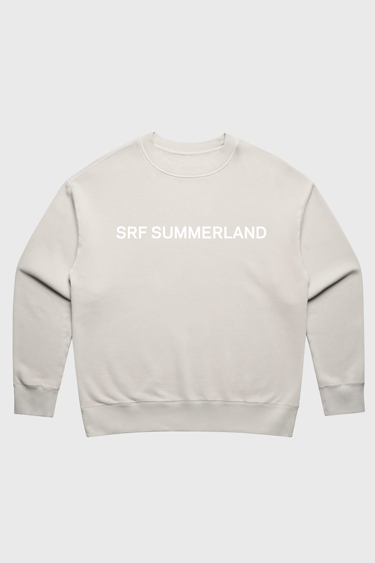 Meet our classic SRF SUMMERLAND Crewneck - relaxed fit, cotton, drop shoulder. Throw it over, layer it under, it's made for the everyday.