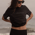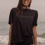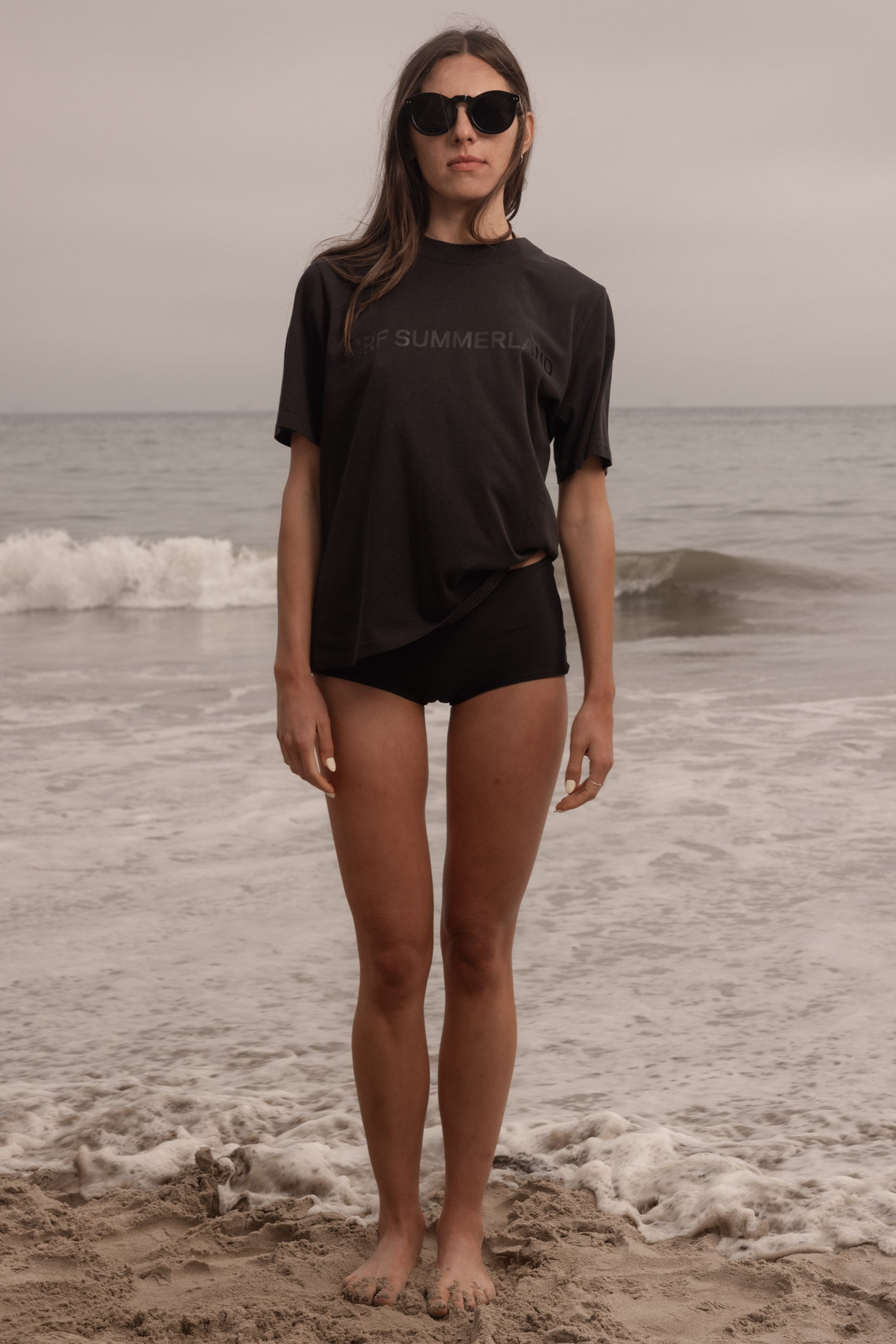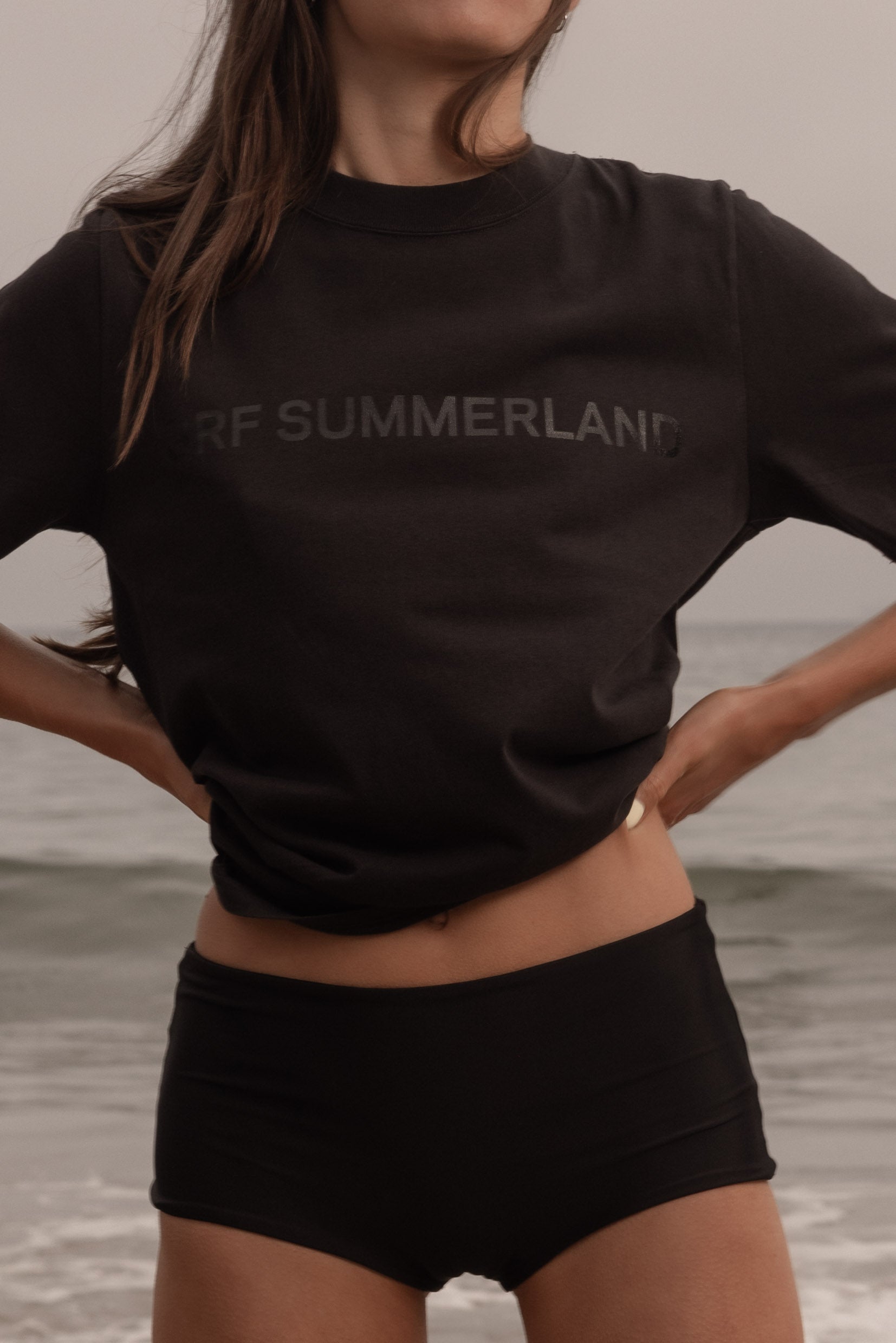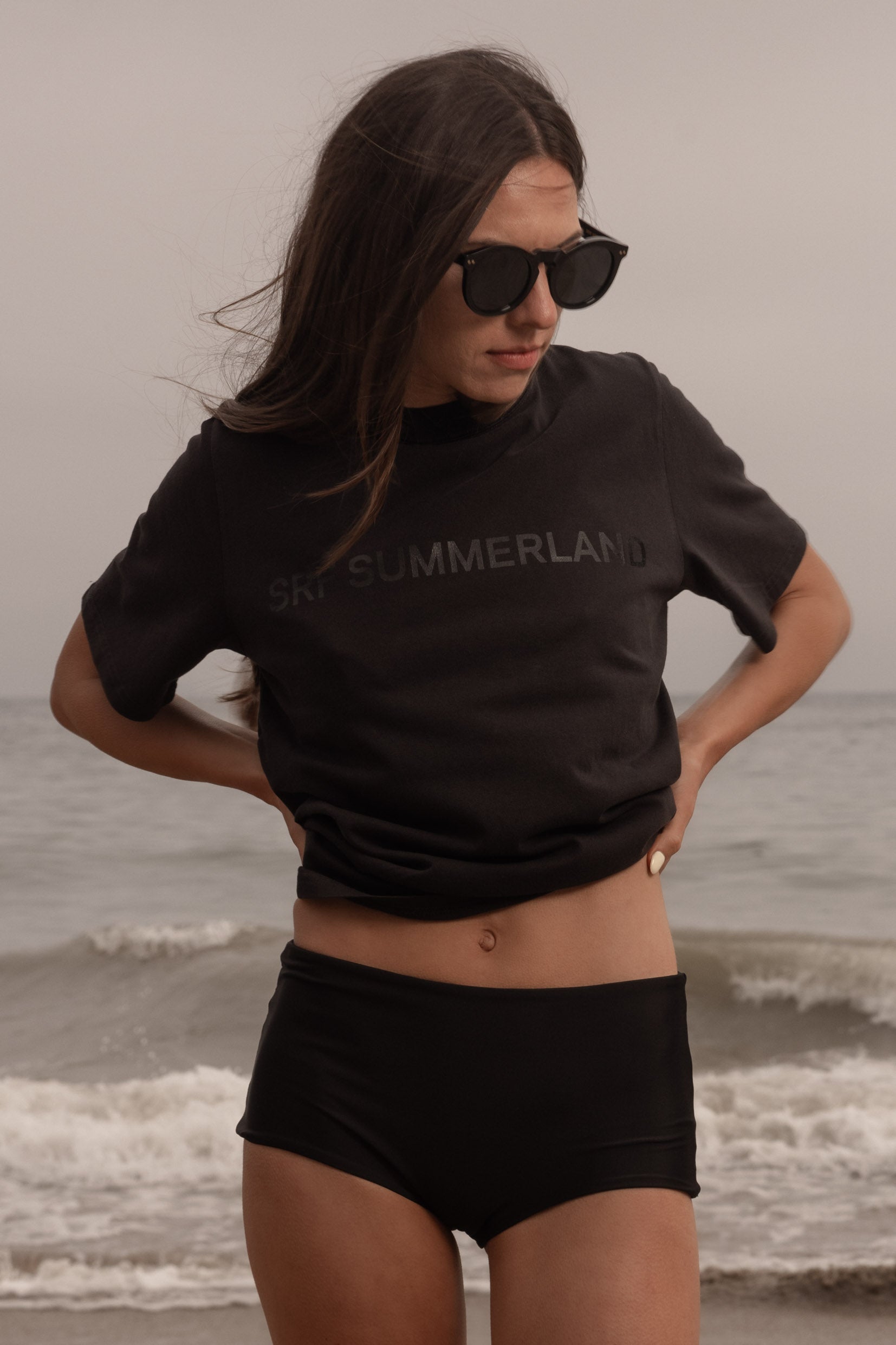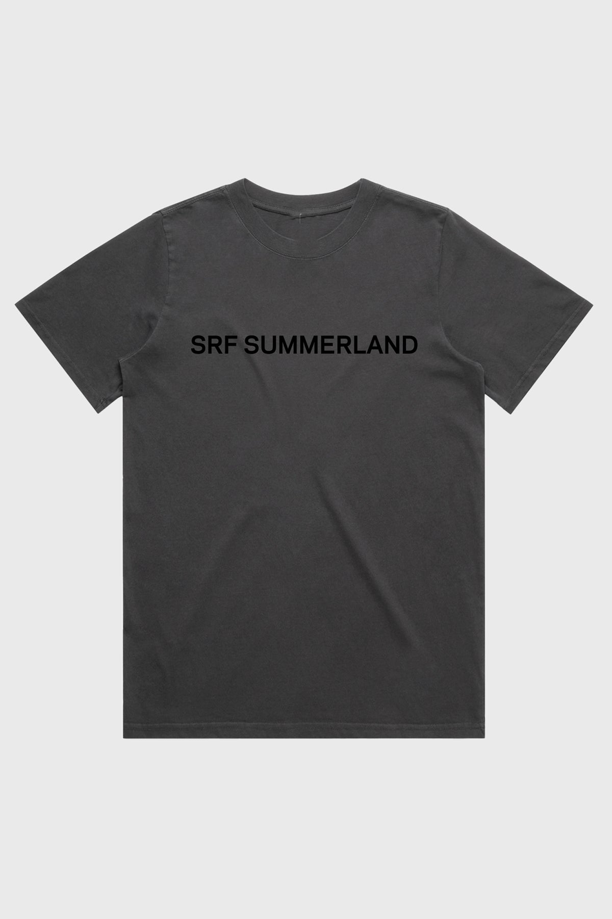 Introducing, SRF SUMMERLAND, where it's always Summer! This is a relaxed, heavy weight cotton tee has a wide neck ribbing and shoulder to shoulder tape.