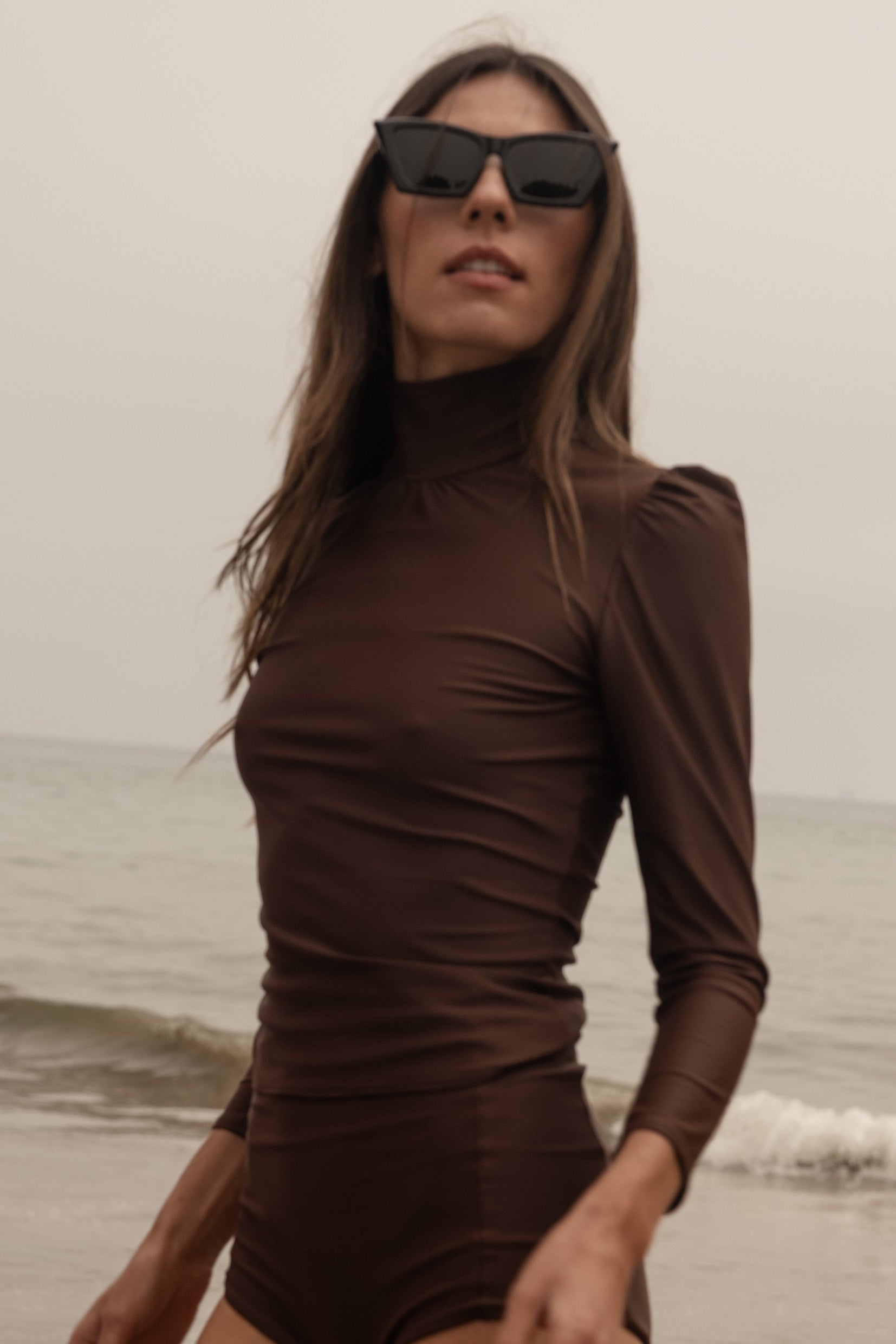 Izzy Rashguard - Chocolate - Heidi Merrick