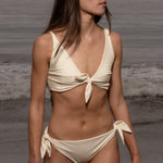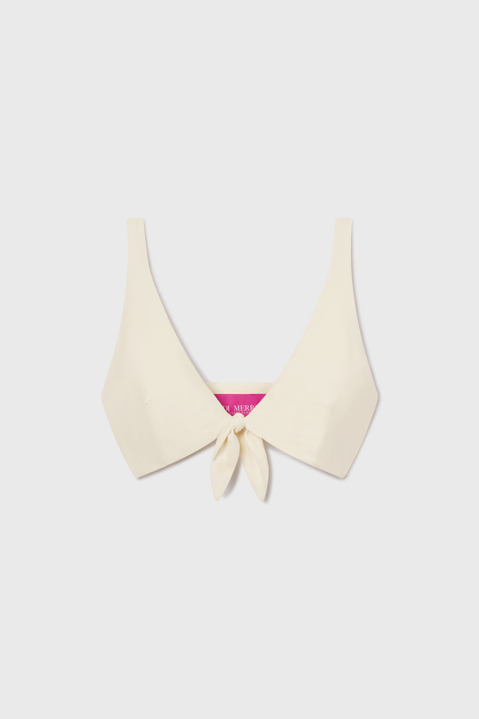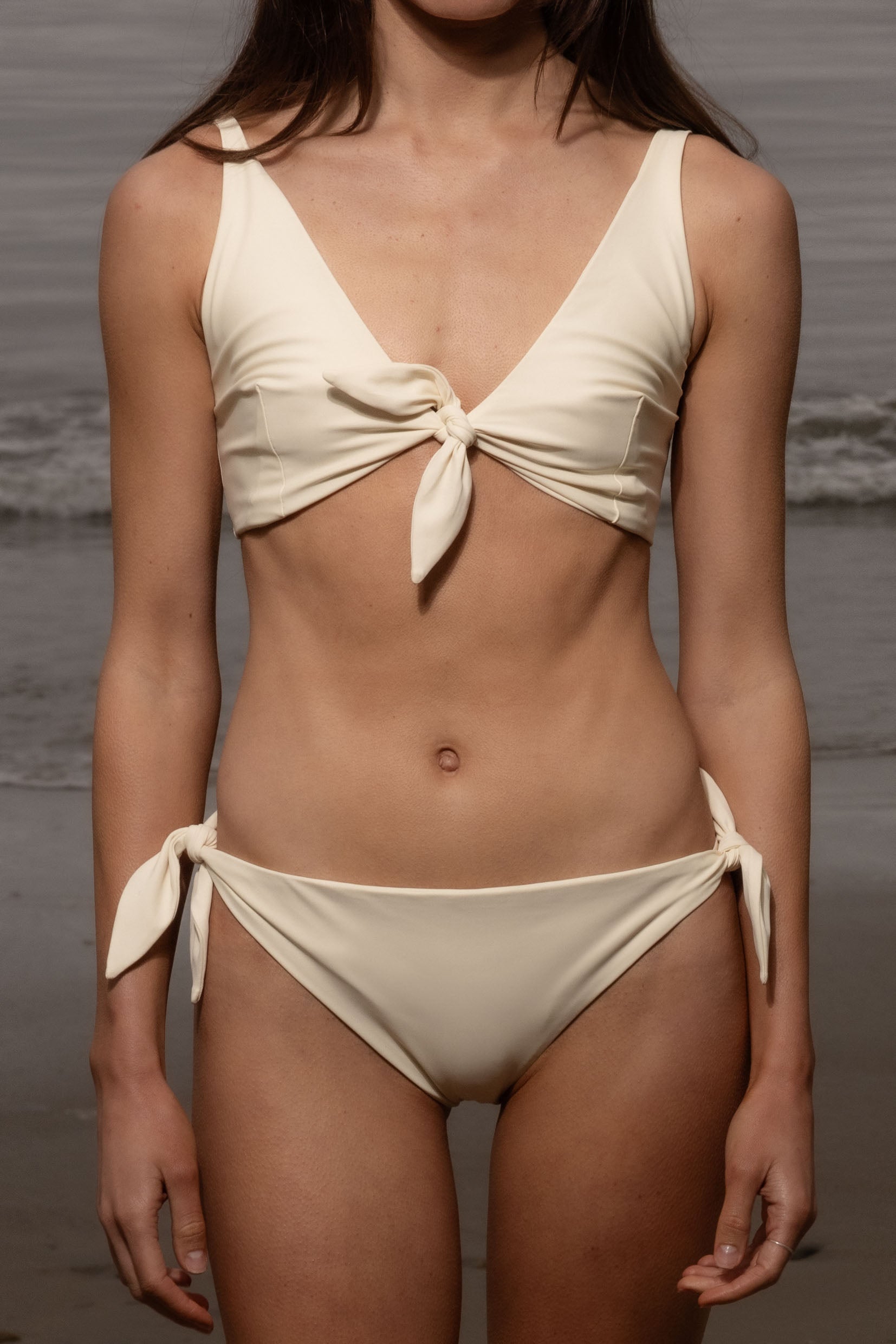 Named after Heidi's mom, the Terry Top is a bralette style shape exuding a moment of the coastal 60's style that we all aspire to emit. With a small dart on the center bust and a center front tie, it has a sweet and supportive fit. Thin straps connect to the back for light structure.