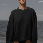 Made entirely in Los Angeles, the Barrel Sleeve Crewneck is designed in a locally knitted hemp viscose diagonal French terry. It features a barrel-shaped sleeve and long rib trim, creating a cool, oversized shape that still feels refined. Finished with our 70's SRF LA logo embroidered small on the chest, it’s a timeless sweatshirt redefined by Los Angeles craftsmanship.